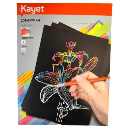 Obrazy zdrapki to czarne arkusze kryjące pod spodem przepiękne kolorowe obrazy do wydrapania. Zabawa polega na zdrapywaniu górnej warstwy czarnej farby specjalnym rysikiem, w zaznaczonych miejscach na arkuszach - co pozwala na stopniowe odsłanianie pięknego, ukrytego rysunku. Jest to wspaniała zabawa dla każdego.