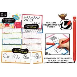 Zestaw idealnie sprawdzi się jako pomoc edukacyjna dla przedszkolaków w domu oraz w placówkach edukacyjnych. Ćwiczenia rysunkowe rozwijają koordynację ręka–oko, precyzję ruchów oraz cierpliwość, jednocześnie przygotowując dziecko do nauki pisania w sposób naturalny i bez presji.
