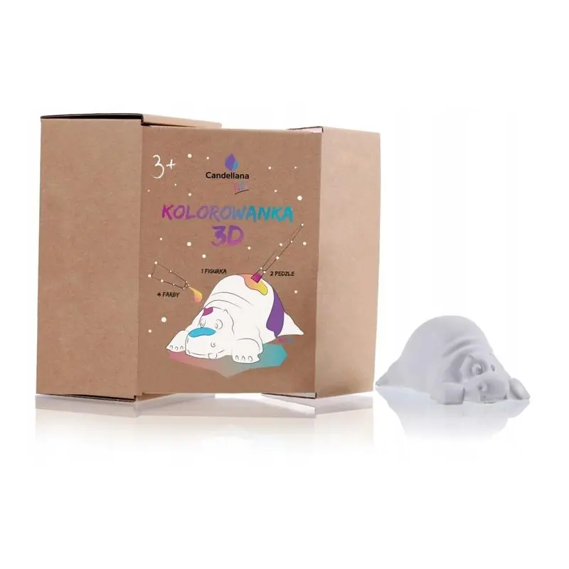 Figurka Funny Hippo 6 cm Candellana Kids to 3D gipsowa zabawka edukacyjna dla dzieci od 3 lat, która rozwija kreatywność, zdolności manualne i koncentrację. Idealna do samodzielnej zabawy lub jako prezent plastyczny.