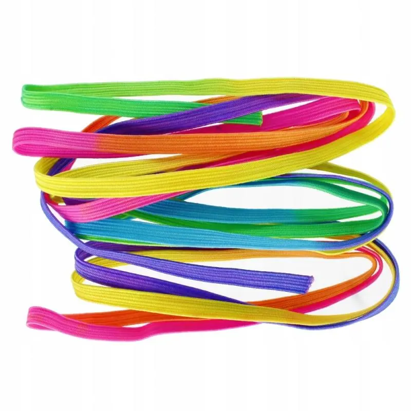 Tęczowa guma do skakania o długości 300 cm to klasyczna zabawka ruchowa, która zapewnia dzieciom mnóstwo radości i aktywności na świeżym powietrzu. Kolorowa, elastyczna guma zachęca do zabawy w pojedynkę lub w grupie, rozwijając sprawność fizyczną i koordynację