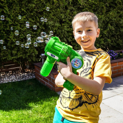 - Dynamiczna zabawa – pistolet wypuszcza dziesiątki baniek w jednym momencie.