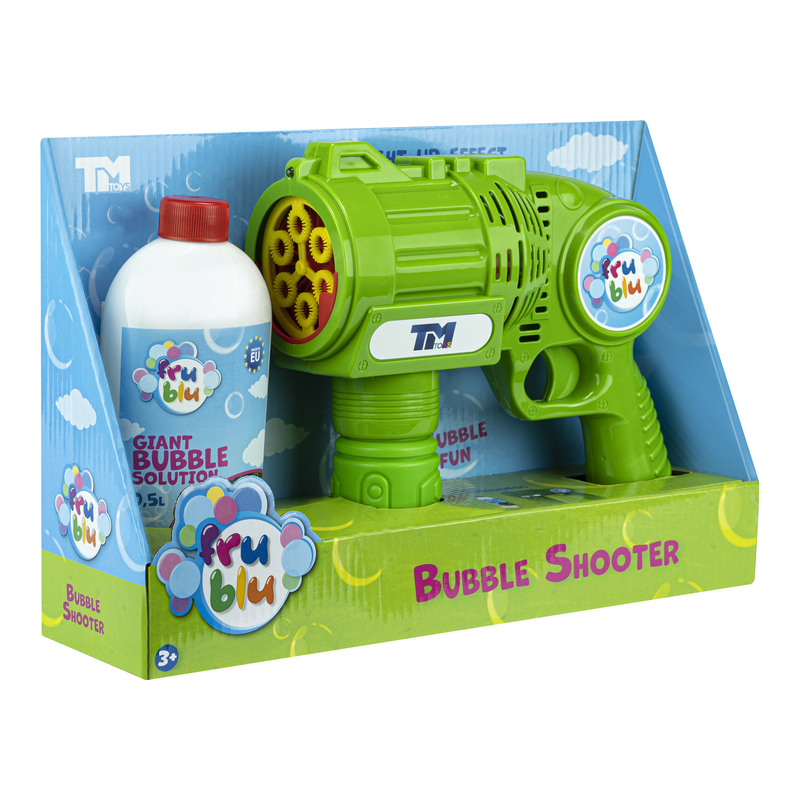 - Łatwa obsługa – wystarczy wlać płyn, nacisnąć spust i obserwować kolorowe bańki.