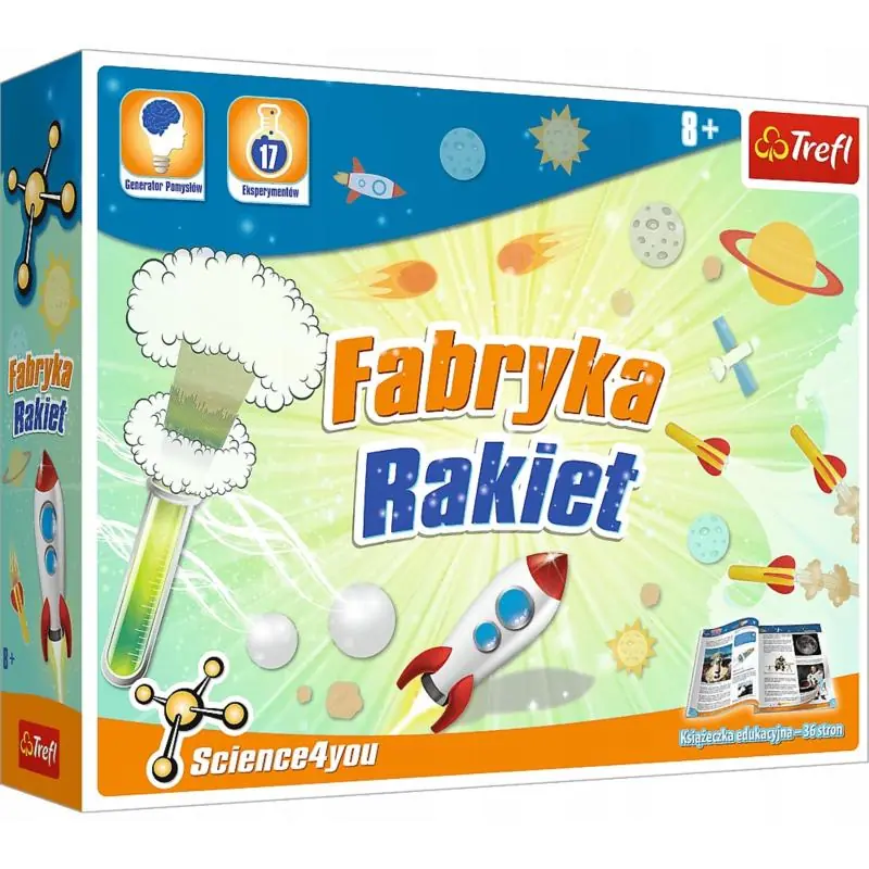 Trefl Fabryka Rakiet Science4You Duży Zestaw to rozbudowany zestaw edukacyjny dla dzieci, który wprowadza w fascynujący świat kosmosu, fizyki i eksperymentów naukowych. Dzięki temu zestawowi naukowemu Science4You dzieci mogą odkrywać zasady działania rakiet, poznawać tajemnice silnika odrzutowego oraz wykonywać aż 17 różnorodnych eksperymentów.