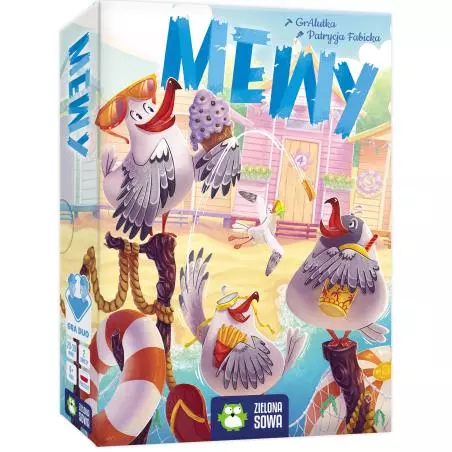 „Mewy” to dynamiczna gra karciana dla dwóch osób, w której gracze budują domki na plaży i przeszkadzają sobie nawzajem, podrzucając karty z mewami! Przegoń złośliwe mewy ze swojej plaży i nie daj się ograć!