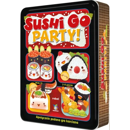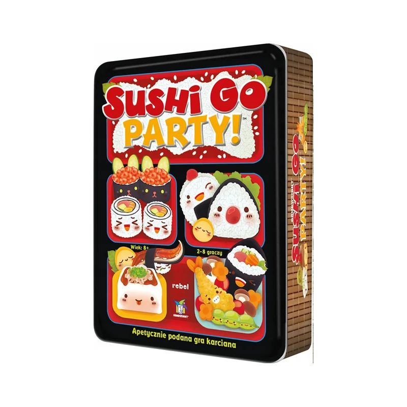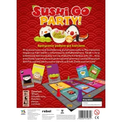 Sushi Go Party to rozszerzona, jeszcze bardziej emocjonująca wersja bestsellerowej gry Sushi Go!, teraz dostępna w polskiej wersji językowej. To dynamiczna, łatwa do opanowania gra karciana typu "draft", w której gracze tworzą najlepsze zestawy sushi, zdobywając punkty za różnorodne kombinacje. Dzięki większej liczbie kart i konfigurowalnym menu, rozgrywka za każdym razem jest inna. Idealna dla dzieci od 8. roku życia, rodzin oraz grup znajomych.