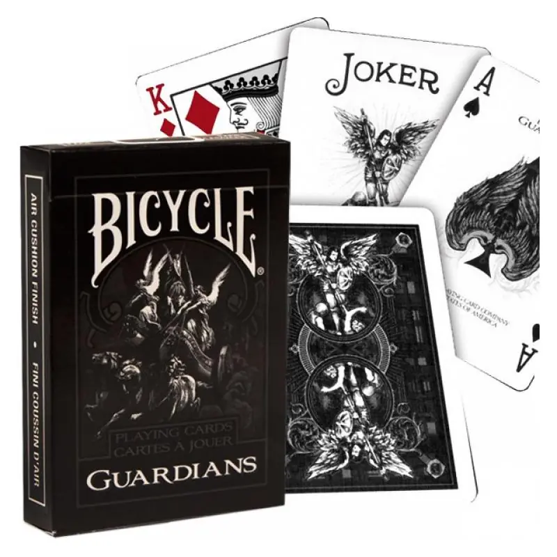 Talia kart Bicycle Guardians to wysokiej klasy karty do gry stworzone z myślą o graczach, iluzjonistach oraz kolekcjonerach. Charakterystyczna grafika inspirowana motywem strażników oraz legendarna jakość marki Bicycle zapewniają niezawodność, estetykę i doskonałe właściwości