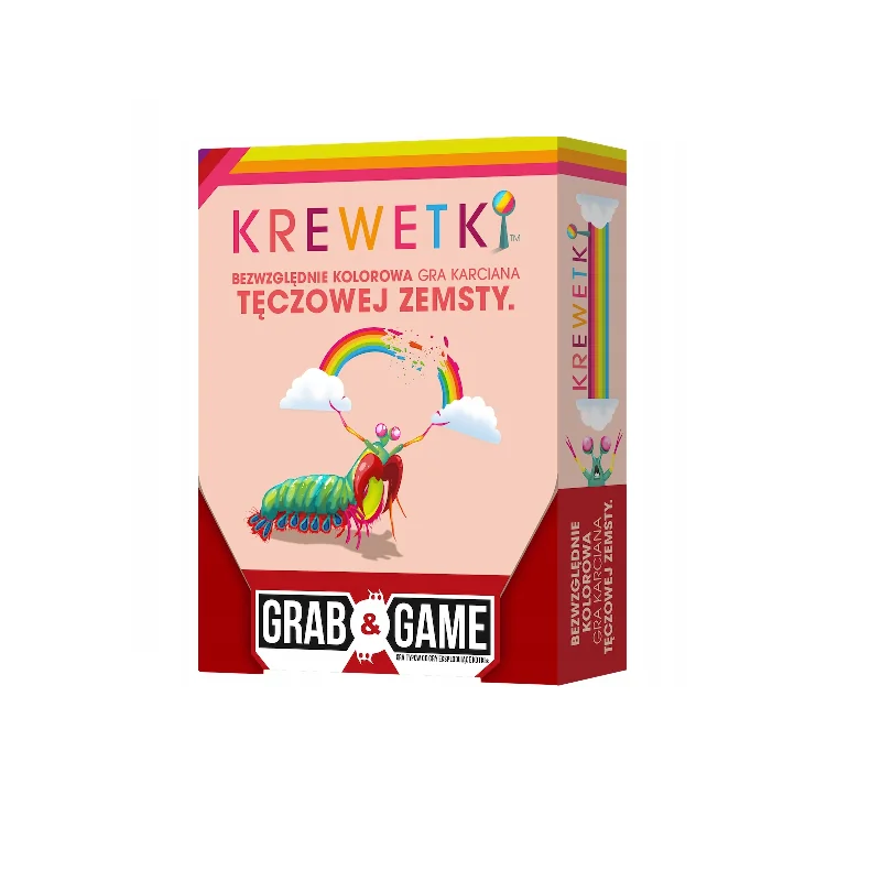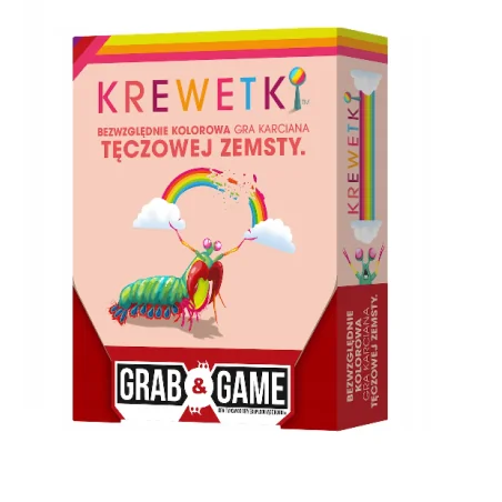 Kręć się na emocjonalnej karuzeli, balansując między wielką nadzieją a spektakularnym upadkiem. Zbieraj zestawy pasujących do siebie obrazków, kradnij karty przeciwnikom, kuś los w najlepsze i udawaj, że ryzyko, które podejmujesz, jest tak naprawdę dobrze skalkulowane. Grab&Game: Krewetki to kieszonkowa odsłona gry o tęczowej zemście, w której walczymy o to, kto jako pierwszy zbierze 10 kart na swoim stosie punktowania. W poręcznym pudełku znajdziesz 60 kart, które pozwolą na zabawę 4 śmiałkom spragnionym emocji, rywalizacji i nieczystych zagrywek.