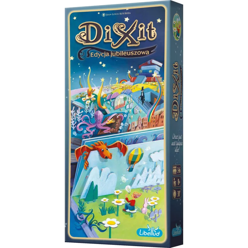 W Edycji Jubileuszowej znajduje się 84 karty, z których każda to małe arcydzieło sztuki. Dixit to narracyjna gra karciana, w której gracze wymyślają i odgadują skojarzenia do ilustrowanych kart. Każda runda rozpoczyna się od wyboru Bajarza, który podaje hasło pasujące do wybranej karty. Pozostali gracze wybierają karty ze swojej talii, starając się wybrać taką, która najlepiej odzwierciedla podane hasło. Celem jest odgadnięcie, który obrazek został wybrany jako pierwszy.