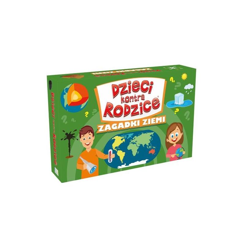 Gra Dzieci kontra Rodzice. Zagadki Ziemi Kangur 6+ to interaktywna planszówka, która łączy naukę z zabawą i wspiera rywalizację w przyjaznej atmosferze. Zestaw umożliwia wspólne rozwiązywanie zagadek geograficznych, rozwijając wiedzę o Ziemi,
