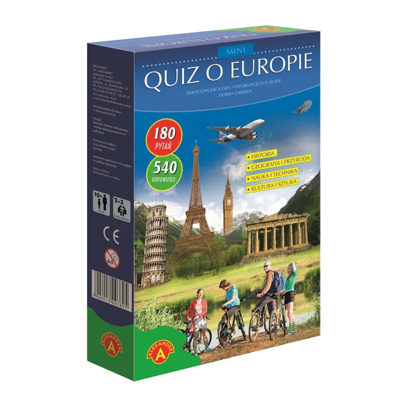 MINI QUIZ O EUROPIE to edukacyjna gra karciana, która w angażujący sposób poszerza wiedzę o kontynencie europejskim. Przeznaczona dla dzieci od 10. roku życia, młodzieży i dorosłych, doskonale sprawdza się jako gra rodzinna, pomoc dydaktyczna lub forma nauki przez zabawę. Kompaktowy format