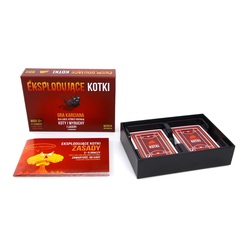 Eksplodujące Kotki to gra, która łączy szybkie decyzje, nieco strategii i dużą dawkę śmiechu. Idealna zarówno na rodzinne wieczory, jak i imprezy ze znajomymi, dzięki kompaktowemu formatowi sprawdzi się też jako gra podróżna.