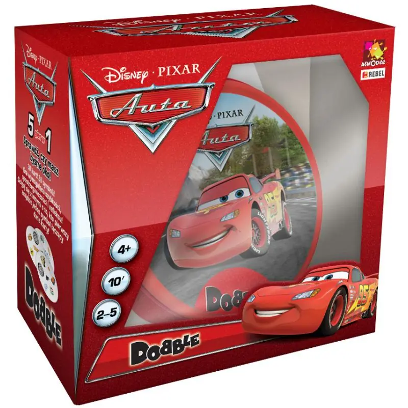 Dobble Auta Rebel 4+ to szybka gra zręcznościowa dla dzieci, oparta na popularnej mechanice wyszukiwania wspólnego symbolu. W tej tematycznej wersji inspirowanej filmem „Auta” Disneya i Pixara gracze ćwiczą spostrzegawczość, refleks i koncentrację, rywalizując o to, kto pierwszy odnajdzie pasujący obrazek na kartach.