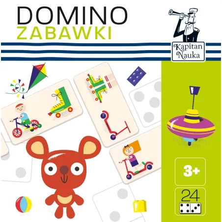 DOMINO OBRAZKOWE ZABAWKI z serii Kapitan Nauka to znakomita zabawka edukacyjna dla dzieci od trzeciego roku życia. Przez dopasowywanie obrazków i cyferek o tej samej wartości dzieci uczą się spostrzegawczości, liczenia oraz logicznego myślenia.