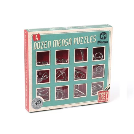 W opakowaniu Mensa znajduje się 12 różnych metalowych łamigłówek. Możesz je rozwiązać samodzielnie lub