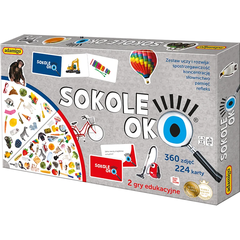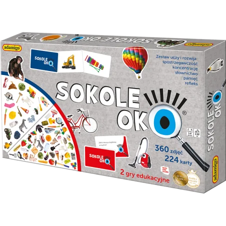 "Sokole oko" to doskonała gra na spostrzegawczość dla całej rodziny, a "Sokole oko. Foto" to jej nowa odsłona, w której przed graczami postawione zostaje zadanie odszukania jak największej liczby przedmiotów na podstawie wybranych fotografii. Ten, kto odnajdzie ich najwięcej, wygrywa. Dzięki dwóm stopniom trudności gra doskonale nadaje się zarówno dla młodszych graczy, jak i dla osób dorosłych.