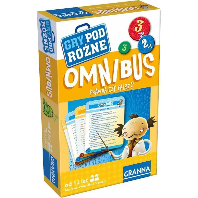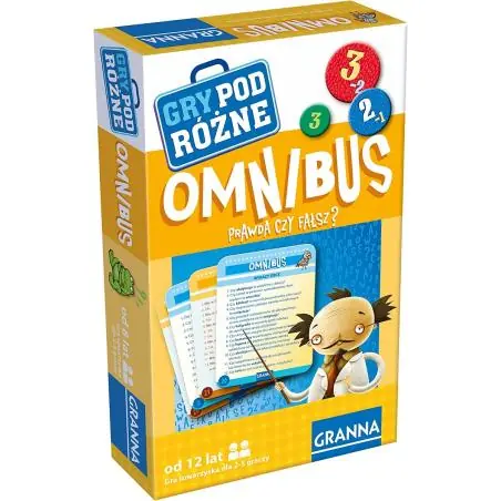 „Omnibus: Prawda czy Fałsz?” to dynamiczna gra quizowa dla dzieci i całej rodziny, która łączy naukę z zabawą. Stworzona przez renomowaną markę Granna, gra rozwija wiedzę ogólną, logiczne myślenie i umiejętność szybkiego podejmowania decyzji. Doskonała dla dzieci od 7. roku życia, a