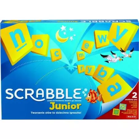 Scrabble Junior zostały tak opracowane, aby dzieci mogły się cieszyć grą podobą do Scrabble dostosowaną do ich wieku. W pudełku znajdują się dwie wspaniałe gry słowne. Pierwsza z nich, "Słowa i obrazki", przeznaczona jest dla młodszych dzieci. Na planszy nadrukowano słowa wraz z odpowiednimi ilustracjami. Taka kombinacja słów i obrazów pomaga maluchom w nauce czytania oraz bezbłędnego pisania.