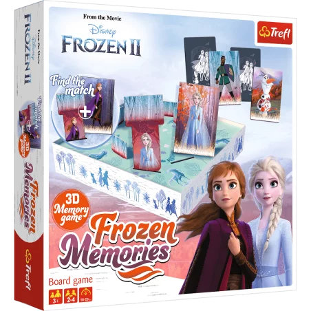 Frozen Memories to gra planszowa oparta o licencję Disney Frozen 2. Dołączcie do świata bohaterów filmu „Kraina Lodu II”, spostrzegawczość i dobra pamięć to rzeczy niezbędne do osiągnięcia zwycięstwa.