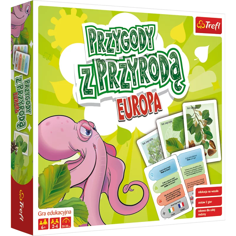 Czy rozpoznajecie drzewo po jego liściach i owocach? Zapraszamy na podróż po Europie, której celem będzie odkrywanie tajemnic przyrody. Przygody z przyrodą to zestaw dwóch edukacyjnych gier: Podróż po Europie - w której gracze, odpowiadając na pytania i zbierając odznaki umiejętności, będą mogli lepiej poznać świat roślin i zwierząt Starego Kontynentu; oraz Co to za drzewo? - w której zadaniem graczy będzie zbieranie zestawów kart odnoszących się do najpopularniejszych w Polsce drzew.