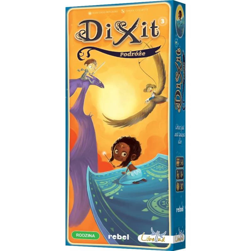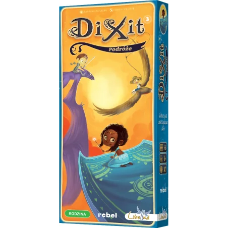 Dixit 3: Podróże to trzecie rozszerzenie do niezwykle popularnej gry planszowej Dixit, które wnosi do rozgrywki nowe, pełne wyobraźni i artystyczne karty. Produkt jest idealny dla fanów podstawowej wersji Dixit, którzy chcą wzbogacić swoje sesje o świeże ilustracje i jeszcze więcej kreatywnej zabawy. Dodatek przeznaczony jest dla graczy od 8. roku życia, którzy cenią sobie wspólną zabawę i rozwijanie wyobraźni.