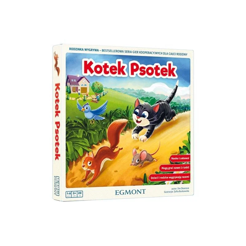 „Kotek Psotek” to urocza gra planszowa stworzona specjalnie dla najmłodszych dzieci od 3. roku życia. Wydana przez renomowane wydawnictwo Egmont, gra rozwija umiejętność współpracy, zdolności społeczne oraz myślenie strategiczne w przyjaznej, bezpiecznej i kolorowej formie. To doskonała pierwsza