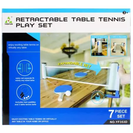 Do rakietek dołączone są trzy plastikowe piłeczki, skierowane głównie do graczy hobbystycznych, ich krągłość i wytrzymałość czyni je odpowiednimi dla początkujących zawodników, trzy piłki w kolorze białym oraz siatka.