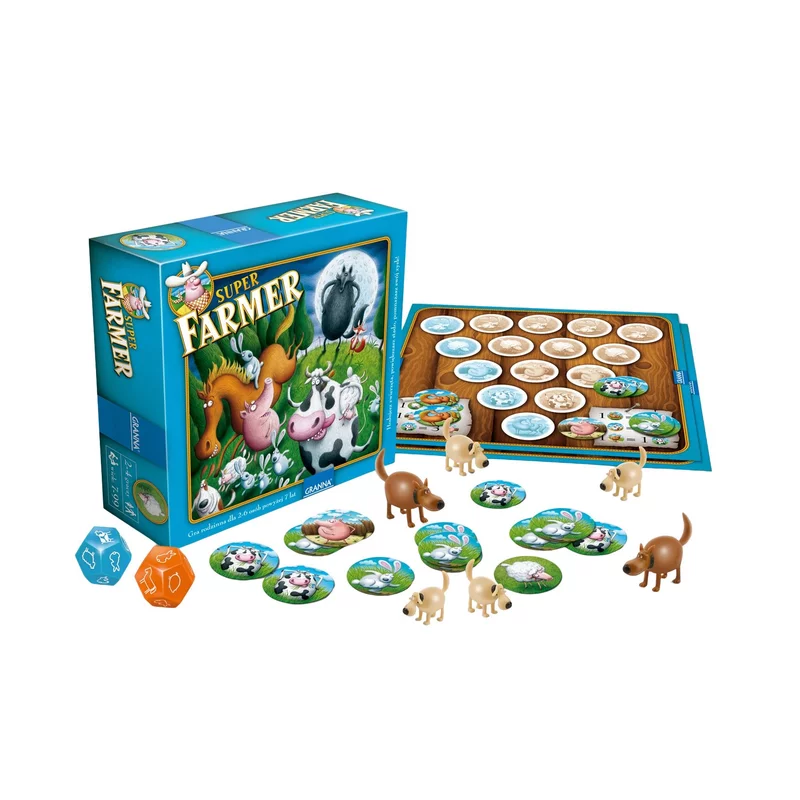 Super Farmer to klasyczna, rodzinna gra planszowa od Granna, skierowana do dzieci od 7. roku życia oraz całych rodzin. Gra łączy elementy strategii, liczenia i planowania, ucząc podstaw ekonomii i zarządzania gospodarstwem. To doskonały sposób na wspólne spędzanie czasu, rozwijanie logicznego myślenia i