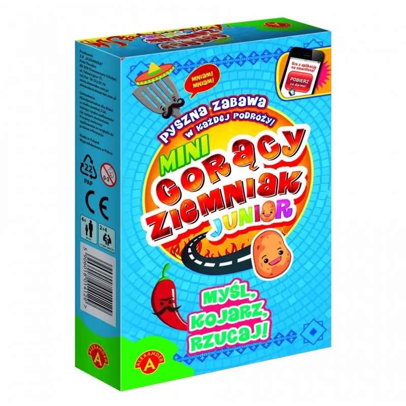 Gorący Ziemniak Junior Mini marki Alexander to dynamiczna gra zręcznościowa stworzona z myślą o najmłodszych graczach od 3 lat. Idealna na rodzinne spotkania, ta szybka i emocjonująca gra rozwija refleks, koordynację ręka-oko oraz uczy zdrowej rywalizacji. Kompaktowy rozmiar