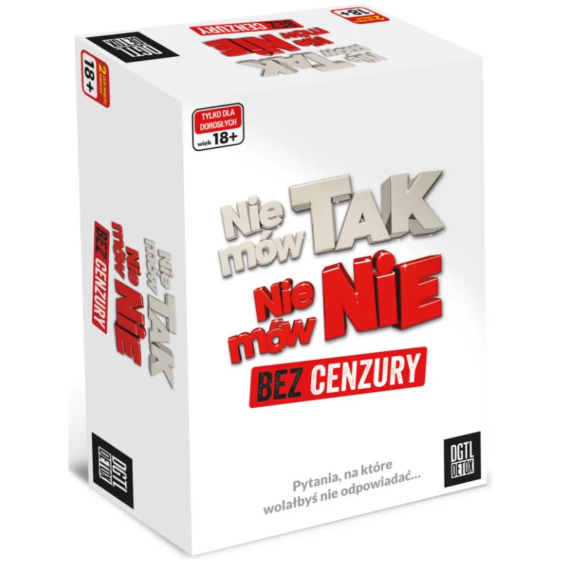 Nie mów TAK, nie mów NIE – Bez Cenzury to pikantna wersja znanej gry towarzyskiej, stworzona z myślą o dorosłych graczach. Ta dynamiczna i pełna śmiechu rozgrywka wymaga skupienia, sprytu i... nerwów ze stali. Zadanie wydaje się proste – odpowiadać na pytania, nie używając słów „tak” ani