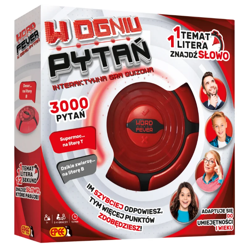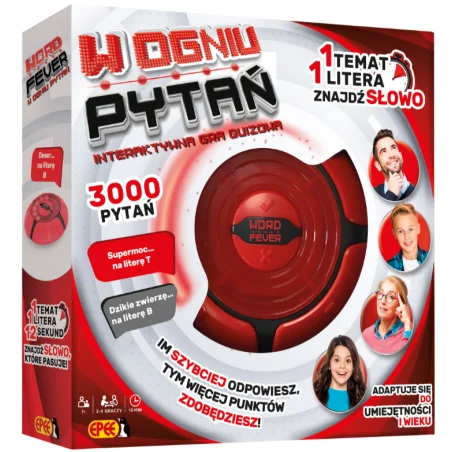 Word Fever W ogniu pytań to dynamiczna gra elektroniczna, która łączy zabawę z nauką słownictwa i szybkiego kojarzenia. Przeznaczona dla dzieci od 7. roku życia, rozwija refleks, koncentrację i wiedzę ogólną w formie emocjonującej rywalizacji.