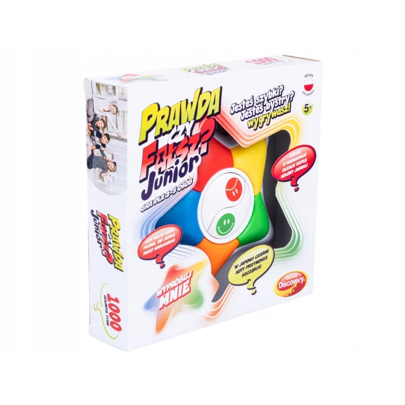 Prawda czy Fałsz Junior to interaktywna gra edukacyjna dla dzieci w wieku od 5 lat, idealna do wspólnej zabawy w gronie rodziny i przyjaciół. Poprzez udzielanie odpowiedzi „prawda” lub „fałsz” na pytania zadawane przez urządzenie-gwiazdkę, gracze rozwijają wiedzę ogólną, refleks i logiczne myślenie, bawiąc się równocześnie.