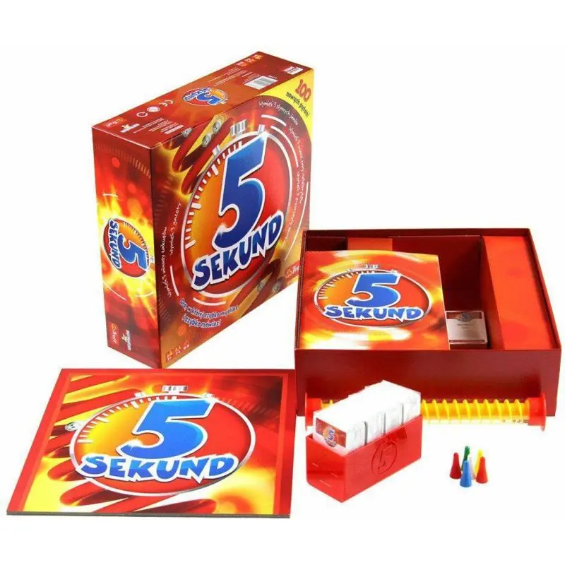 Szybkie myślenie pod presją czasu? W 5 Sekund nie ma czasu na długie zastanawianie się! To dynamiczna gra towarzyska, która sprawdza refleks, kreatywność i poczucie humoru graczy. Twoim zadaniem jest odpowiedzieć na proste pytania – ale masz tylko 5 sekund! Idealna na rodzinne spotkania,