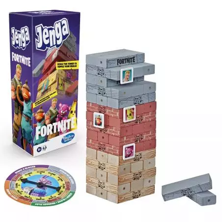 Zainspirowana grą Fortnite, wyjątkowa edycja Jengi - teraz możesz przeprowadzić szturm na wieżę! Pnij się w górę i zostań tym, który dotrze na szczyt. Ale uważaj… jeśli wieża runie podczas Twojej tury, wypadniesz z gry! Zakręć spinnerem, by dowiedzieć się, jaki będzie Twój kolejny ruch: jak wiele pięter musisz pokonać i jakie klocki
