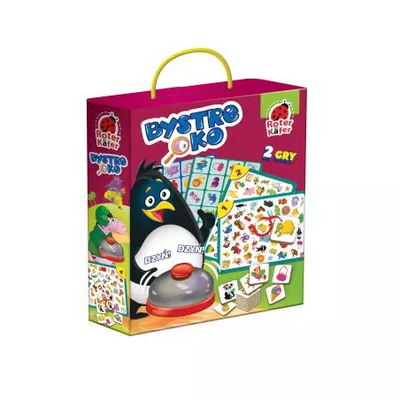 Bystre oko to super rywalizacja w postaci 2 gier: Bądź pierwszy! i Bingo, rozwijających spostrzegawczość, refleks i koordynację ruchową. Wspaniała zabawa dla całej rodziny.