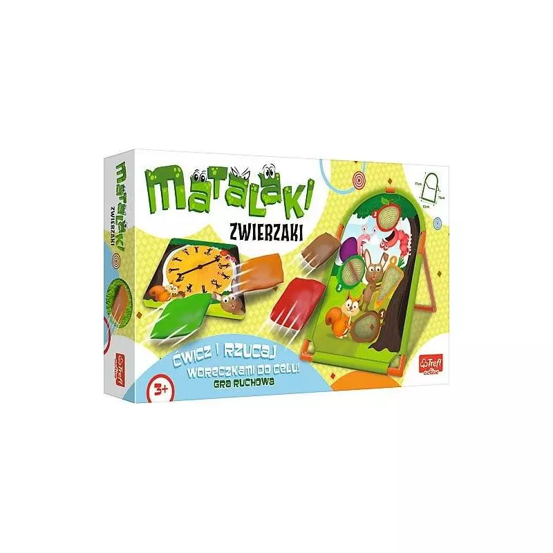 Trefl Active - Matalaki to gry ruchowe przeznaczone dla dowolnej liczby uczestników, w których losujesz zadanie, rzucasz woreczkiem do celu i zdobywasz punkty.