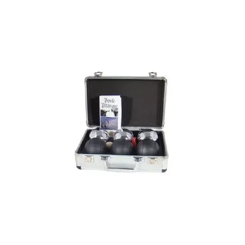 Boule/Petanque jest francuską grą plenerową z elementami zręcznościowymi. Popularna w szczególności we Francji, ale uprawiana także w innych krajach europejskich i na świecie. W zestawie - 6 petanque boule, (3 czarne i 3 chromowane boule) - 1 aluminiowa zamykana na zatrzaski walizka - 1 świnka - 1 pasek do mierzenia - Wielojęzyczna instrukcja i