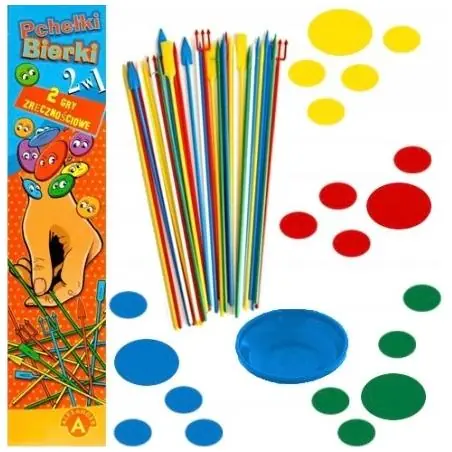 Zestaw Bierki i Pchełki 2w1 Alexander 5+ to bezpieczna, edukacyjna i kreatywna gra zręcznościowa dla dzieci powyżej 5 lat, idealna do zabawy w domu, w podróży lub w grupie rówieśniczej.