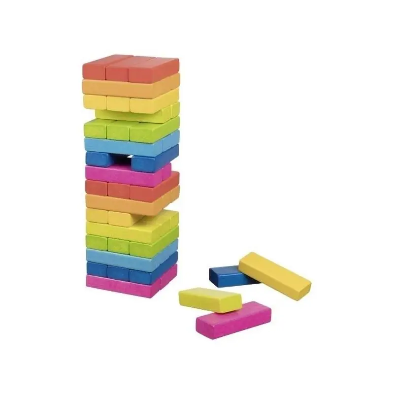 Podczas zabawy dzieci uczą się koncentracji, sprytu i planowania ruchów, a kolorowe klocki w 8 barwach dodają atrakcyjności wizualnej. Zabawa polega na układaniu wieży, a następnie ostrożnym wyciąganiu kolejnych klocków tak, aby konstrukcja się nie zawaliła. Im wyższa wieża, tym większe wyzwanie.