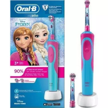 Szczoteczka elektryczna Oral-B Stages Power Kids Frozen wykonuje ruchy oscylacyjno-rotacyjne, które umożliwiają kompleksowe mycie zębów. Nie tylko zapewnia Twojemu dziecku optymalne efekty codziennej pielęgnacji jamy ustnej, ale również dobrą zabawę.