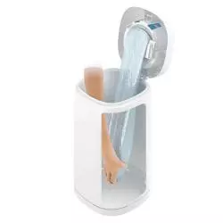 - pokrywa otwierana przyciskiem: obsługa jedną ręką; sprężynująca klapka otwierająca się przez naciśnięcie przycisku