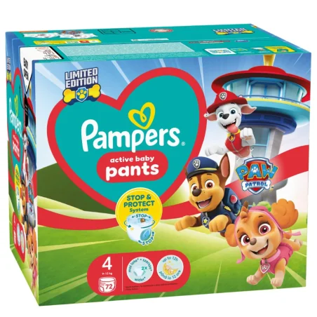 Pieluchomajtki Pampers Pants to innowacyjne rozwiązanie dla aktywnych maluchów, zapewniające wygodę, suchość i ochronę przez całą dobę. Dzięki motywowi z popularnej bajki Psi Patrol, Twoje dziecko będzie cieszyć się nie tylko komfortem, ale i radością z ulubionymi bohaterami.