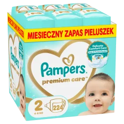 Najlepszy komfort i ochrona wrażliwej skóry dziecka od Pampers. Zbyt długi kontakt z moczem i zawartością pieluszki może wpłynąć na stan wrażliwej skóry Twojego dziecka, powodując uczucie dyskomfortu lub niepokój. Pieluszki Pampers Premium Care zostały specjalnie zaprojektowane, aby zapewnić dziecku wyjątkową miękkość i najdelikatniejszą ochronę od Pampers dzięki