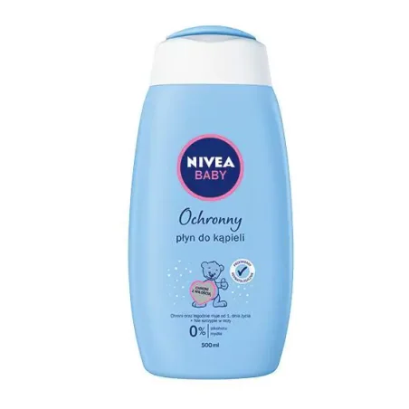 NIVEA Baby Ochronny Płyn do Kąpieli to delikatna formuła stworzona specjalnie z myślą o wrażliwej skórze niemowląt i dzieci powyżej 1. miesiąca życia. Kremowy płyn bez mydła łagodnie myje, pielęgnuje i chroni skórę przed wysuszeniem, pozostawiając ją gładką, miękką i zdrowo