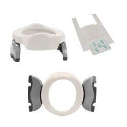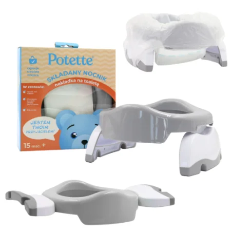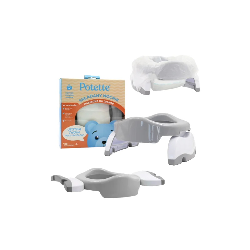 Potette Plus 2w1 to praktyczny i bezpieczny zestaw nocnika oraz nakładki na sedes, zaprojektowany specjalnie dla dzieci uczących się korzystać z toalety. W kolorze szarym, wykonany z trwałych i łatwych do czyszczenia materiałów, doskonale sprawdzi się zarówno w domu, jak i w podróży. Produkt