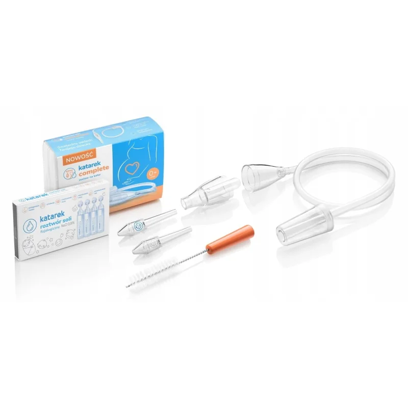 Katarek Plus Complete to bezpieczny i skuteczny aspirator do nosa dla niemowląt i małych dzieci, przeznaczony do stosowania z odkurzaczem. Umożliwia szybkie i bezbolesne usunięcie zalegającej wydzieliny, co ułatwia dziecku oddychanie i zapobiega powikłaniom infekcji górnych dróg oddechowych. To