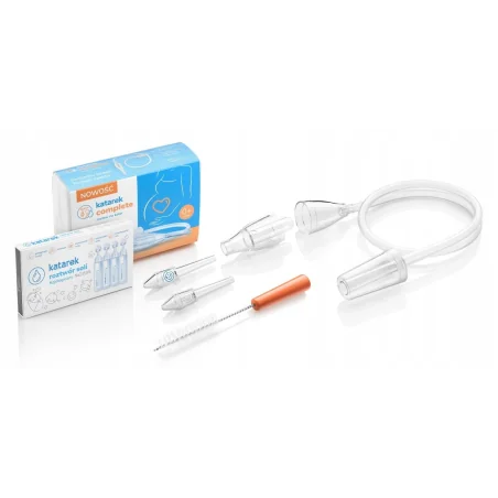 Katarek Plus Complete to bezpieczny i skuteczny aspirator do nosa dla niemowląt i małych dzieci, przeznaczony do stosowania z odkurzaczem. Umożliwia szybkie i bezbolesne usunięcie zalegającej wydzieliny, co ułatwia dziecku oddychanie i zapobiega powikłaniom infekcji górnych dróg oddechowych. To kompletny zestaw medyczny, stworzony z myślą o rodzicach, którzy chcą szybko i higienicznie zadbać o zdrowie swojego dziecka.