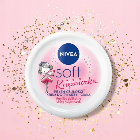 NIVEA Krem Soft Księżniczka to wyjątkowy kosmetyk stworzony z myślą o delikatnej skórze dziewczynek i nastolatek. Jego ulepszona formuła intensywnie nawilża, pielęgnuje i pozostawia uczucie gładkości oraz miękkości. Dzięki lekkiej konsystencji szybko się