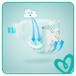 Pieluszki Pampers 4+ to niezawodne rozwiązanie, które zapewnia dziecku spokojny i suchy sen przez całą noc. Dzięki innowacyjnej warstwie chłonnej „Sleep” pieluszki błyskawicznie wchłaniają wilgoć, utrzymując skórę maluszka w suchości – niezależnie od jego ruchów podczas snu.