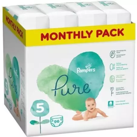 Pieluszki Pampers Pure Protection zapewniają do 12 godzin suchości Pampers, ponieważ Twoje dziecko zasługuje na pielęgnację skóry bez kompromisów. Ty i Twoje dziecko pokochacie m.in. atrakcyjne nadruki i dający poczucie pewności wskaźnik wilgotności Pampers.