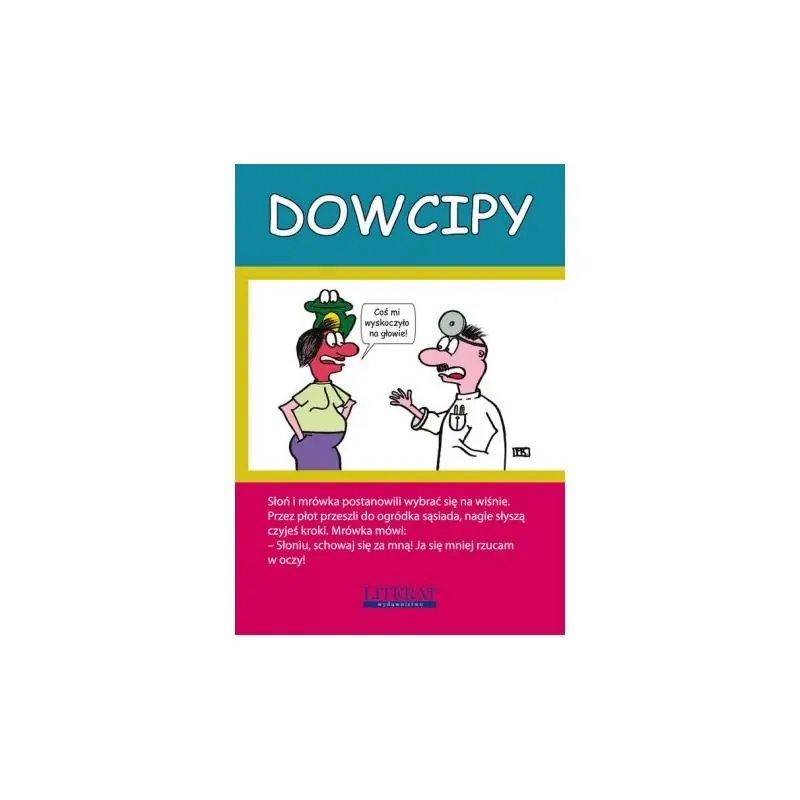 Książeczka w kieszonkowym formacie zawiera kilkaset dowcipów - o blondynkach, Jasiu, lekarzach, policji, rolnikach, szefie, wojsku i zwierzętach.